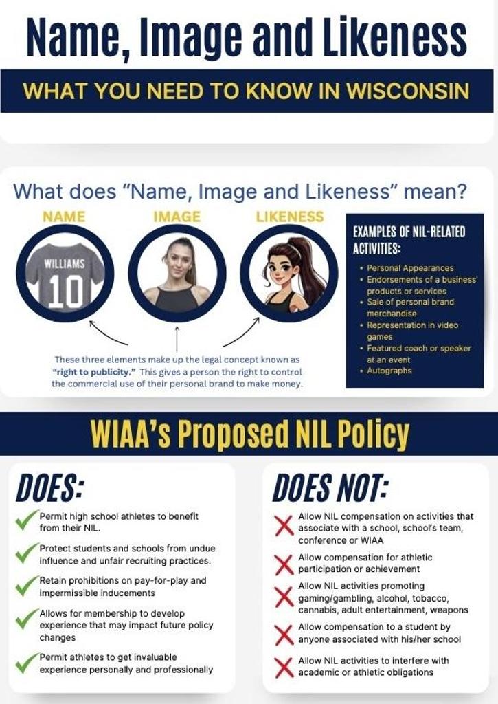 Student-athletes at WIAA member schools are now eligible to begin leveraging their name, image and likeness. However, there are still a number of eligibility rules in relation to these opportunities. Please see the information below to learn more. Contact your school's Athletic Director with any questions.